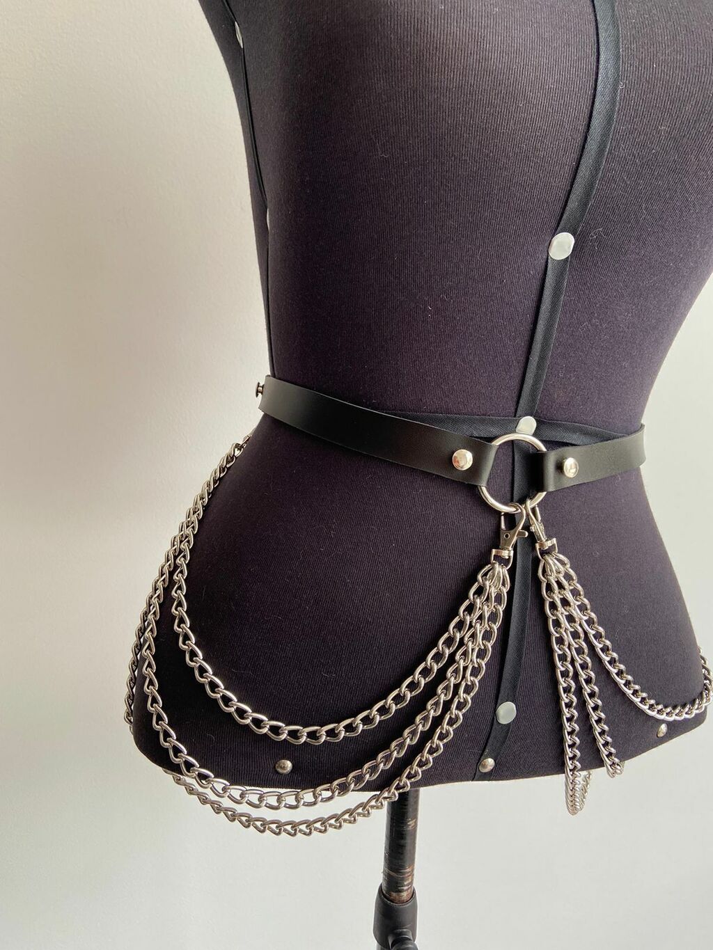Cinto Pretinho Básico todo feito à mão com couro fake, argolas e correntes.