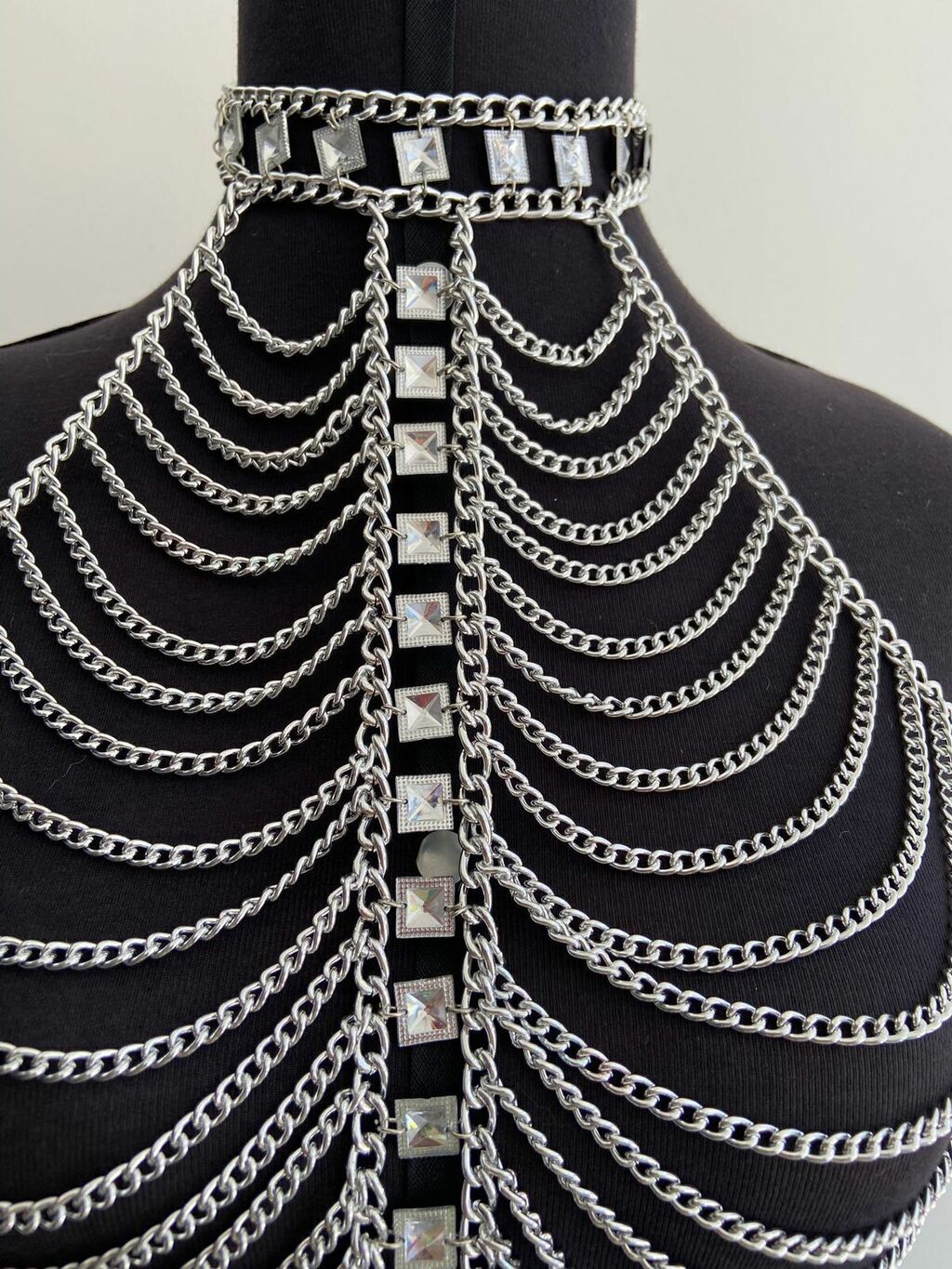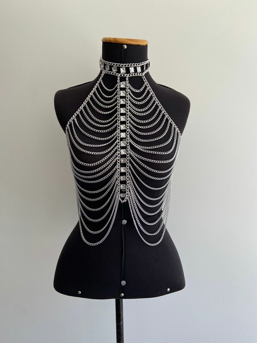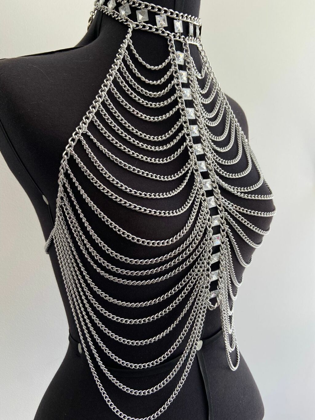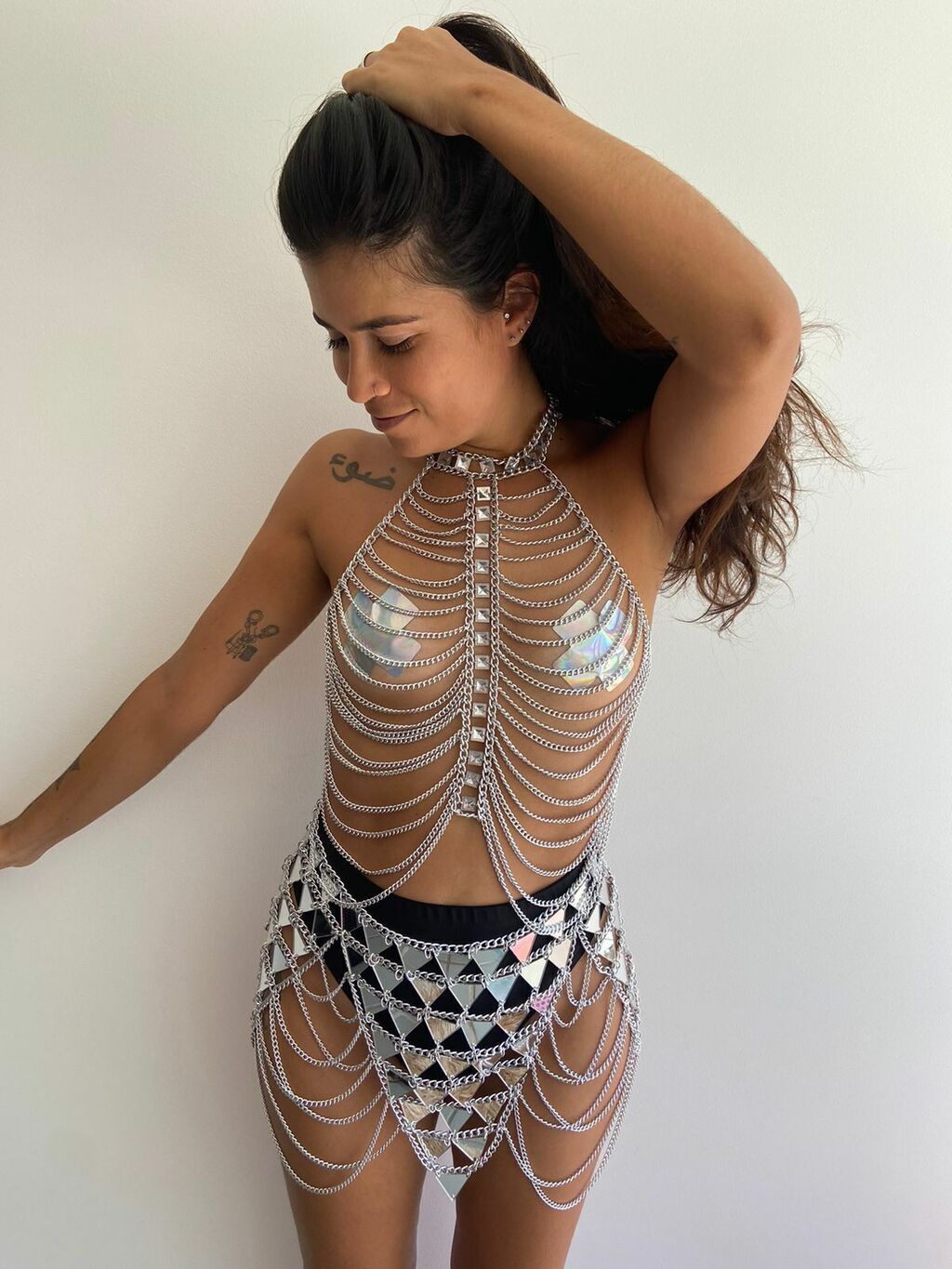 Harness Chain feito à mão com correntes em alumínio e pedraria.