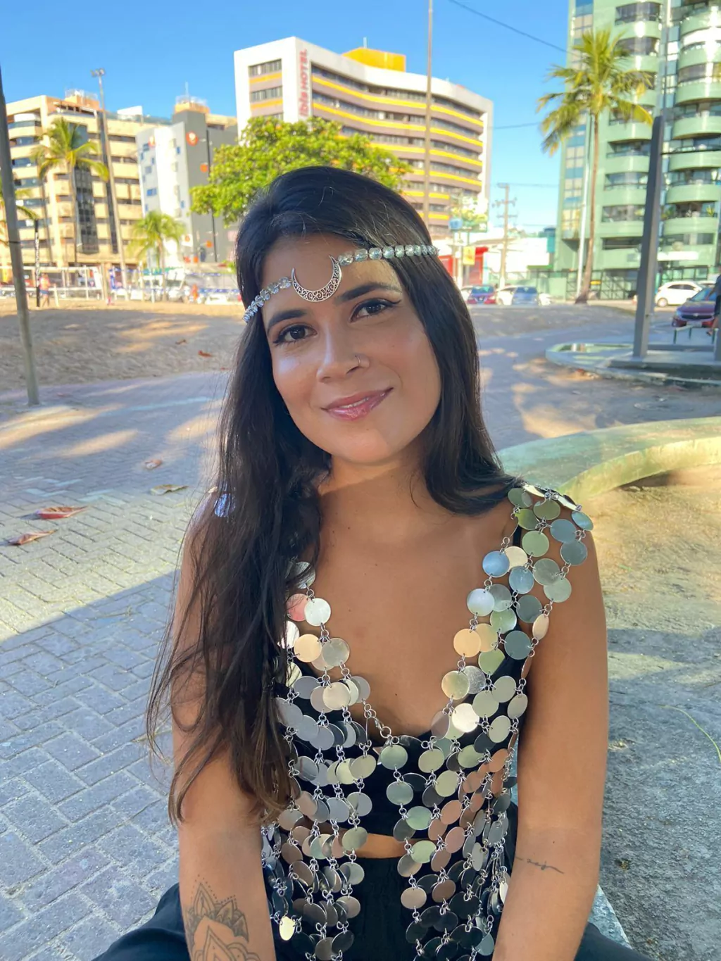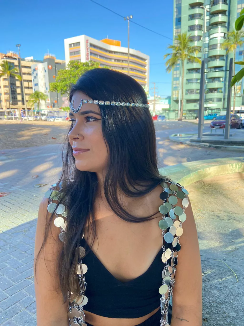 Celebre a feminilidade e a magia da noite com nosso exclusivo acessório para cabeça, o Head Chain Lua. Este acessório para cabeça é um convite para brilhar ainda mais. Com pingente de lua, e acompanhado de pedrarias. Este head chain é mais do que um simples adorno; é uma peça que fala à alma boêmia, ideal para quem quer deixar sua marca por onde passa.