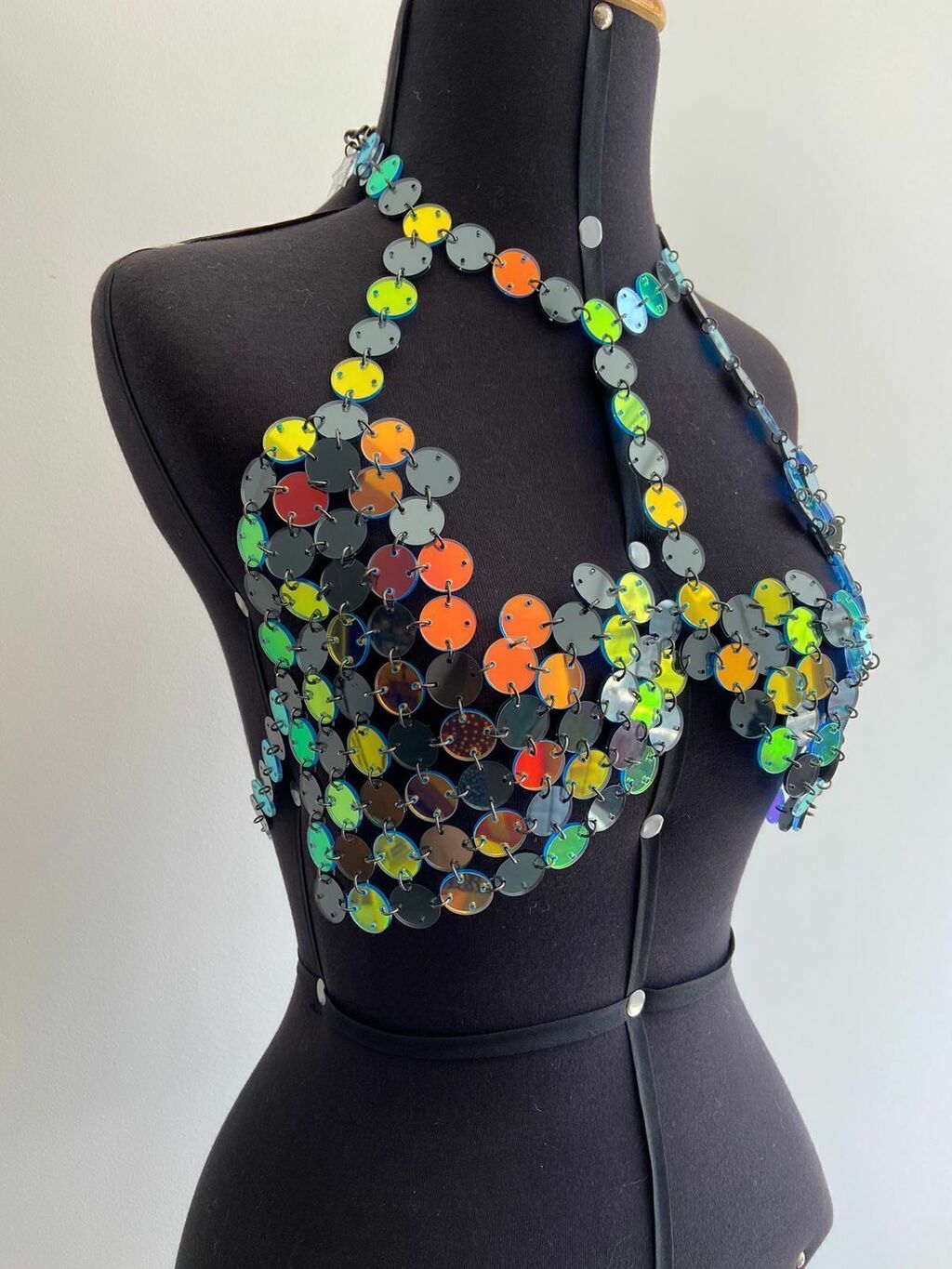 Top Reflection of Love no formato de coração todo feito à mão, com pedrarias em acrílico espelhado.